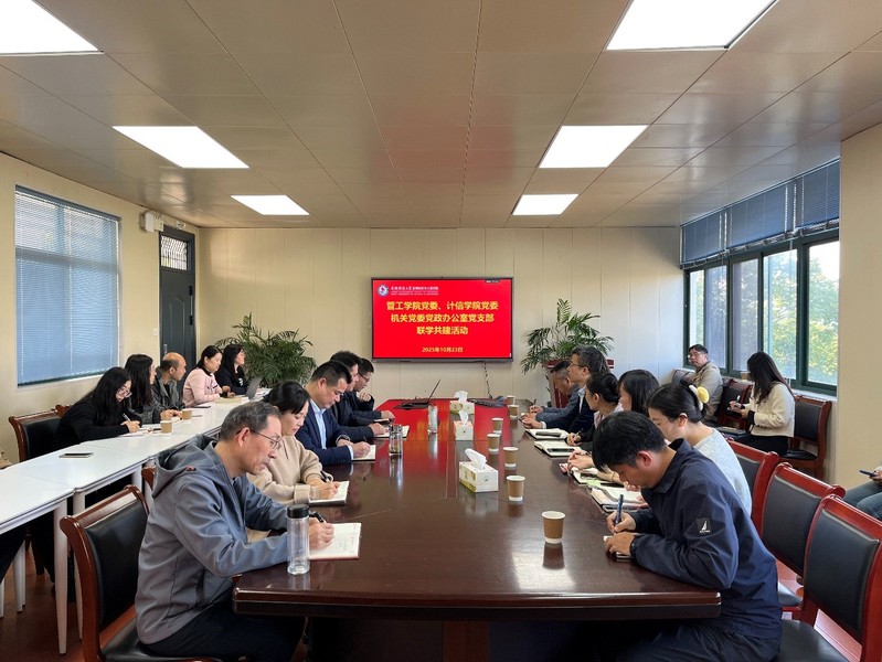 10月23日下午,党政办公室党支部联合管工学院党委、计信学院党委在广学楼303会议室开展联学共建活动。本次活动以“强化协同联动,提升履职效能”为主题,通过业务培训和交流研讨相结合的方式,搭建跨部门学习交流平台,推动党建工作与业务工作深度融合。